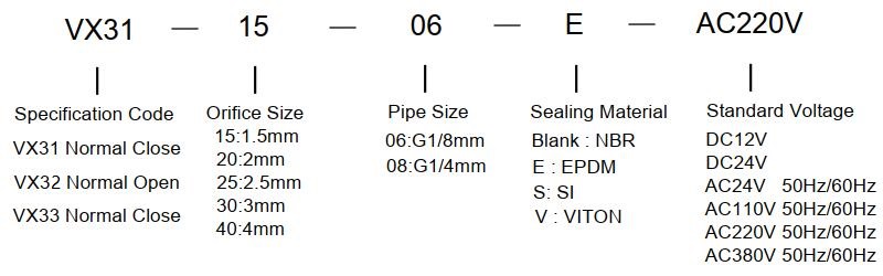 VX31 / VX32 / VX33 Direct Operated 3 Way Solenoid Valve Ordering Code:
